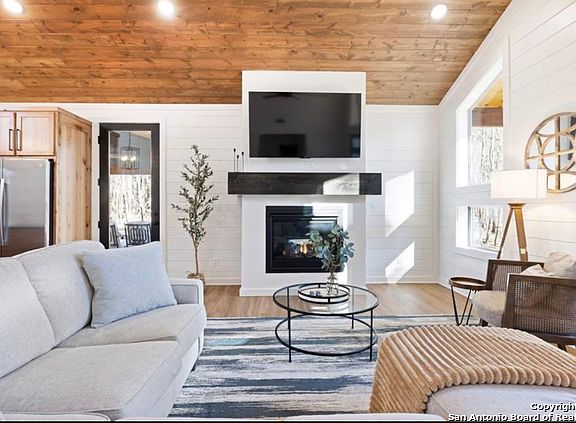BRAND NEW CONSTRUCTION!! Located in Frio River Place in Rio Frio TX. Farmhouse, retro construction. Angles galore, extremely high ceilings in LR. Carport/gameroom combo with glass garage door and fireplace. 4 BR/3 BA 2062 sq ft, only seconds to THE FRIO RIVER. Huge shade trees in the back yard for ample Summer shade. THIS COULD BE THE COOLEST HOUSE IN THE AREA!!!