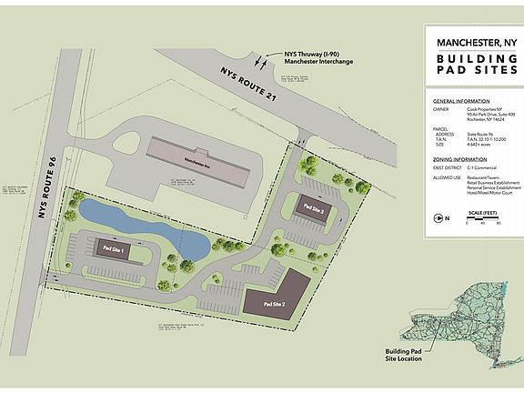 Commercial development opportunity of vacant land zoned for commercial. Incredible location and traffic count right off the thruway. All major gas stations, McDonalds, and Dunkin donuts across the street. Seller financing available with 50% down. Seller would also build to suit or ground lease. All public utilities! Great access with possibility of 2 entrances with DOT approval. This is a must see