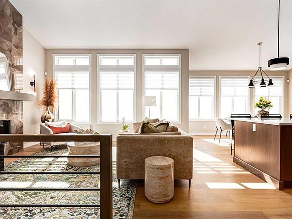 This stunning, newly built bungalow in the prestigious community of Cimarron Estates will be ready for possession in April 2026! For a limited time, you can select the interior finishes for this home, creating a customized property that perfectly reflects your style. Situated on a 17,000 sqft walkout lot with views to greenspace and no neighbour behind, this is truly a rare opportunity. As the last newly built home in Cimarron Estates, don’t miss your chance to secure this one-of-a-kind property. With nearly 3,000 sqft of developed living space, this fully finished home blends luxury and comfort. The main level spans 1,740 sqft, featuring an expansive open-concept living area with vaulted ceilings in the kitchen, dining room, and great room, creating an airy, inviting atmosphere. A wall of rear windows fills the space with natural light, while beautiful hardwood flooring flows throughout. At the heart of the home is a gourmet kitchen with a walk-in pantry, full-height cabinetry, a large island with a beverage cooler, and premium stainless-steel appliances, including a gas cooktop, range hood, wall oven, microwave, and French-door fridge. The kitchen seamlessly connects to the dining area with access to the full-width deck overlooking the backyard & greenspace, as well as the great room, highlighted by a striking floor-to-ceiling tiled fireplace. The primary retreat features a spa-inspired ensuite with dual sinks, a full-tile walk-in shower, a soaker tub, and a large walk-in closet with direct access to the laundry room for added convenience. Completing the main floor are a mudroom off the garage, a 2-piece powder room, and a versatile den/flex room. The fully finished walkout basement adds 1,153 sq. ft. of living space, including two generously sized bedrooms, a full bathroom with dual sinks, and a massive storage/mechanical room. A bright, open rec room with an electric fireplace and a dedicated games area framed by large windows makes the lower level both functional and inviting. From here, walk out to a spacious covered patio and the expansive yard. Other highlights include a side-drive triple-car garage, 8-foot interior doors, premium finishes, and a thoughtful layout designed for modern living. Don’t miss this opportunity to own the final newly built home in Cimarron Estates—a home that offers space, privacy, and luxury in one of Okotoks’ most sought-after communities. **Note: Photos are from a previous show home and may not be an exact representation of the property.