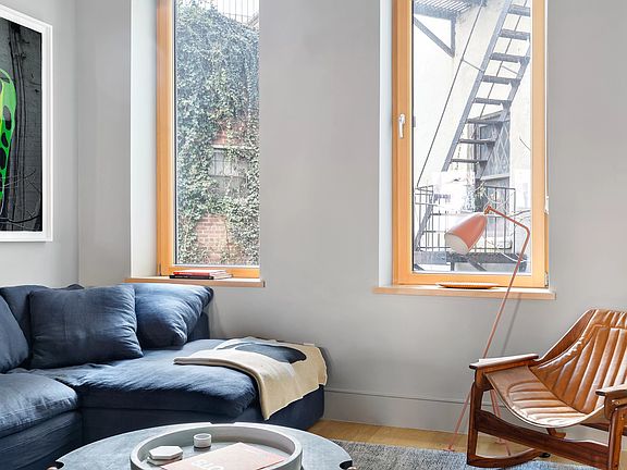 The living room is the perfect size with three large windows facing the neighboring brownstones. Take the handsome stairs to the lower level and you'll be surprised by the cozy vibe of the generous landing. The serene lower level features two great bedrooms and a gorgeous, spa-like bath with a double vanity. The bathrooms are superb with Carrara marble floors, gorgeous black clawfoot tubs, brass hardware, toto toilets and Restoration Hardware lighting.