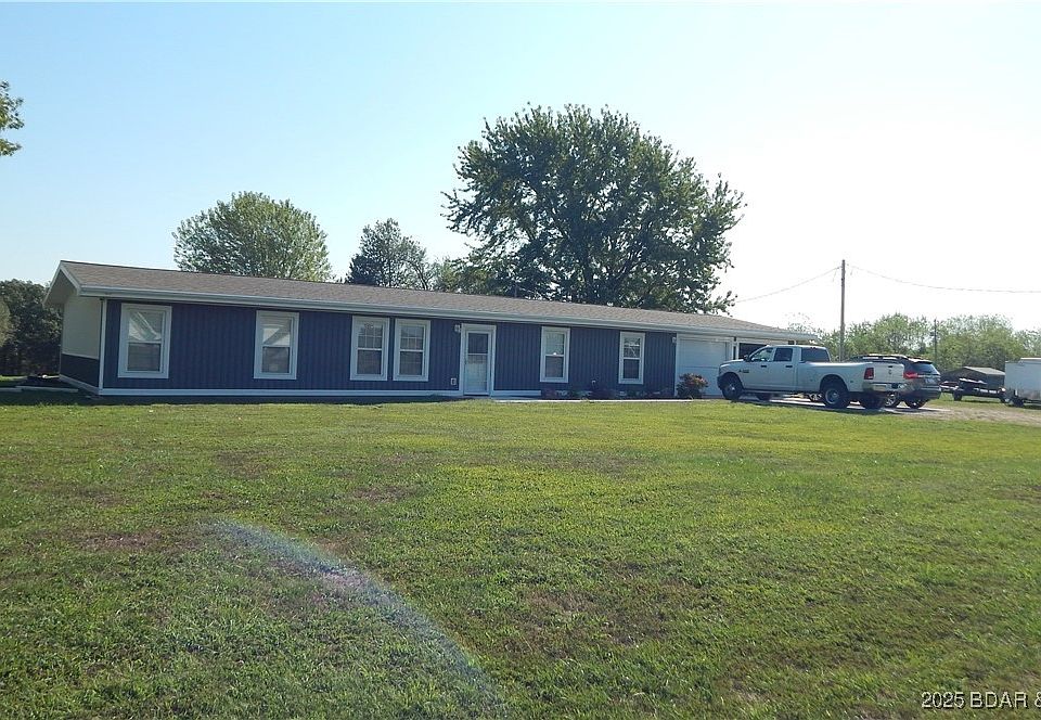Best Location for country living! Close to everything! Between Osage Beach and Camdenton, only two miles from Hwy 54 in Linn Creek off State Hwy V. You'll enjoy the flat open 1.8 acre cleared property for multiple uses. This home features a ranch style with no steps, a full kitchen with island and a large pantry closet. Kitchen and dining area are open and spacious with a walkout slider to the new concrete patio. The home has two bedrooms on one end with a full bath, and a large master suite on the other end with a large bath that features a jacuzzi tub, walk-in closet, separate toilet and shower. All closets have lighting. New concrete driveway, an attached double car garage 23.5x23 with lots of cabinets and separate finished 128 sq ft. workshop with work benches. New siding, roof, and concrete patio and sidewalks in 2025. The newer features throughout includes; flooring, drywall and 12 gage wiring suitable for higher-power appliances. New 12x20 storage shed on a large concrete slab.. Partially fenced yard, with beautiful plants, trees and views. Make this your home for years to come, creating a life of lasting memories.