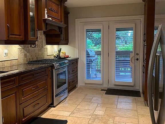 UPGRADED HOME, 3 BEDROOMS, 3 BATHROOMS, FULLY DETACHED. TOTALLY DONE UP FROM PROFESSIONAL LANDSCAPING AND BUILT IN IRRIGATION SYSTEM TO HIGH END BATHROOMS, CUSTOM STONEWORK IN POWDER ROOM AND KITCHEN, MASTER BEDROOM WITH CUSTOM BUILT IN WALK IN CLOSET, SECOND BEDROOM WITH BARN DOOR AND WALL MOUNTED T.V. FINISHED BASEMENT WITH CUSTOM WET BAR AND LARGE BUILT IN ENTERTAINMENT UNIT (INCLUDES PARADIGM SURROUND SOUND SPEAKER SYSTEM). WET BAR AREA INCLUDES SINK, WINE DISPLAY. COZY LIVING ROOM AND FORMAL DINING ROOM WITH BRAZILIAN HARDWOOD FLOORS. GOURMET KITCHEN, GRANITE COUNTER TOP WITH S/S KITCHEN AID APPLIANCES AND BUILT IN SURROUND SOUND SYSTEM AS WELL AS WALK OUT TO DECK AND BBQ AREA. BACKYARD IS AN ENTERTAINER'S DREAM WITH LARGE WEBER BBQ, FIRE PIT, MOUNTED TV AND LOTS OF PRIVACY. UPGRADED WINDOWS, EXTERIOR DOORS AND GARAGE DOOR. CALIFORNIA SHUTTERS ON EVERY WINDOW. BUILT IN SECURITY SYSTEM.