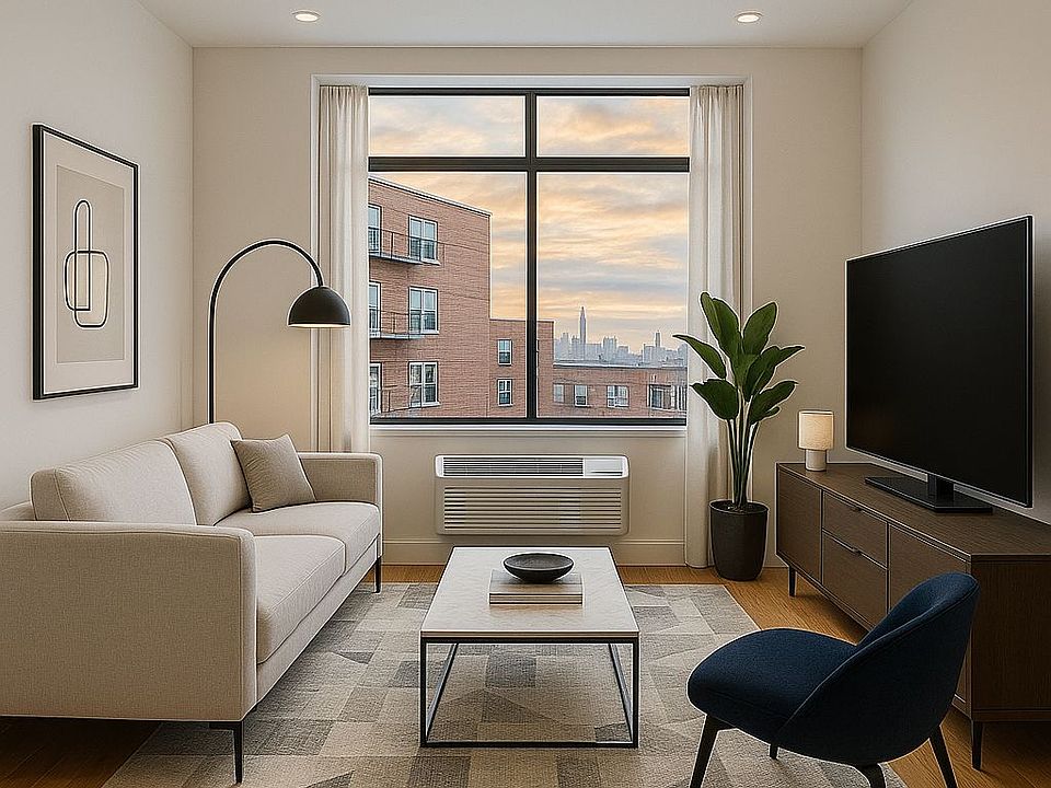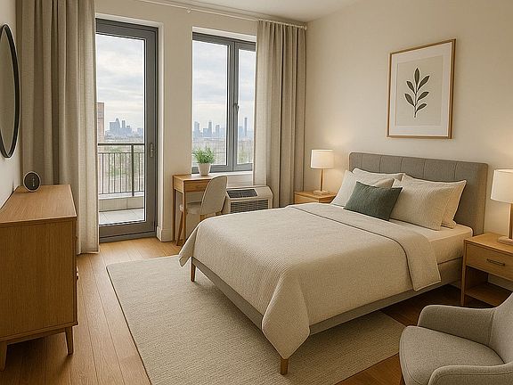 This modern 1 bedroom with huge Private Terrace in an elevator building located in prime Clinton Hill. This unit features oversized windows with sweeping city views, soaring ceilings, and an open, airy layout that blends form and function.