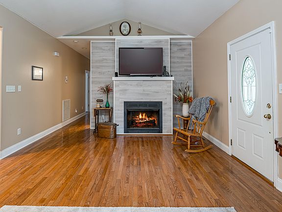 Open Concept Home w/ Cathedral Ceiling in living Room and 9 ft. Ceilings Throughout this Single Level Home. Upgraded SS Appliances, Hardwood Floors in Main Living Area and Kitchen, Gas Fireplace with Upgraded Built in Shelving around Fireplace, French Doors in Dining Area, Primary Bedroom w/ Ensuite Bathroom w/ Jetted Tub, Shower, and Dual Sinks. Private Fenced in Yard, 2 Car Garage, 1/2 Acre lot, Great Covered Front Porch for Entertaining, and County Taxes. Extra Parking for Guests or Toys in Driveway Offshoot. This home will not last long!!!
