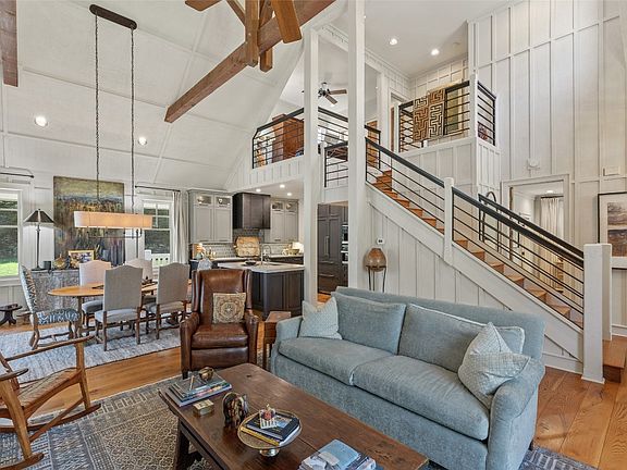 - Features: Built-in Features, Chandelier, Cathedral Ceiling(s), High Ceilings, Natural Woodwork