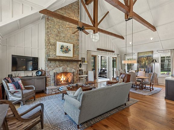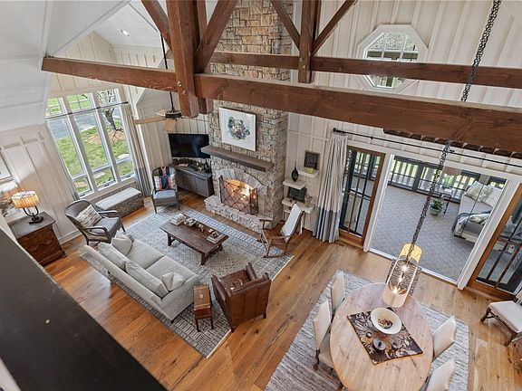 - Description: Great Room with Stone Fireplace and Large Dining Area
