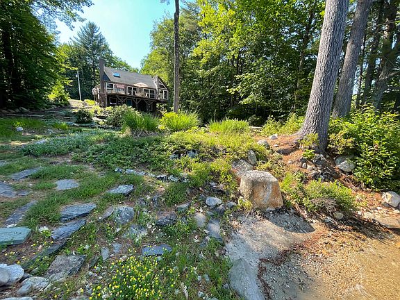 Incredible opportunity to own this one of a kind contemporary waterfront home! This property is situated so nicely on Range Pond and has sun most hours of the day! Amazing private beach with fire pit and one of a kind stone table w/seating! Gorgeous landscape throughout the property which is not only beautiful but maintenance free! Home offers big bright windows overlooking the pond, very private setting, 3 to 4 bedrooms (one is currently a walk in closet but could be converted back to bedroom) 2 full baths, fireplace, new granite countertops in kitchen, full walk out lower level which could easily be finished living space, paved drive with oversized 3 bay garage for all your waterfront toys! Multi-level deck as well as a waterfront deck and beach! Short 45 minutes and you can be at the coast in Portland area or skiing the mountains Mt. Abram, Sunday River!