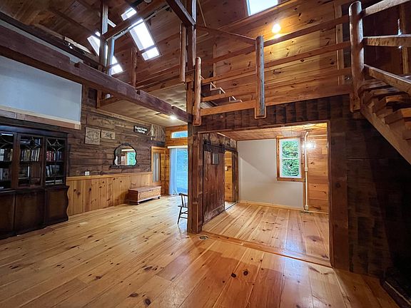 HUGE PRICE REDUCTION due to change in acreage. This newly renovated house, formerly a barn, is a stunning blend of old-world charm and modern elegance. The open-concept living area embraces the modern lifestyle, perfect for entertaining friends and family. Upon entering, you'll immediately be struck by the seamless integration of historic elements and contemporary amenities. The interior showcases an abundance of exposed wooden beams, a testament to its former barn life, which now adds character and warmth to the living spaces. Sunlight streams in through strategically placed windows, enhancing the natural beauty of the wooden features. With a loft area great for home office, first floor primary bedroom, and around 4 acres to explore and enjoy, this property is truly amazing!