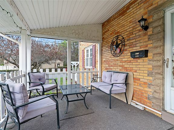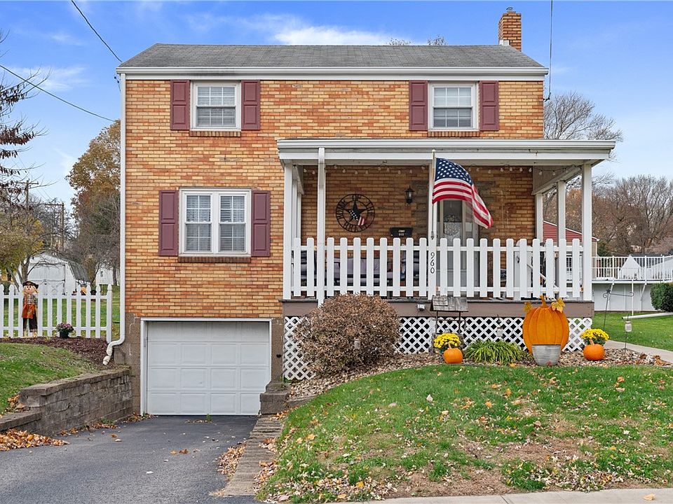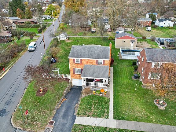 Tour this charming 2 story brick home on a large level corner lot with plenty of outdoor amenities. These includes beautiful above ground pool, less than 5 years old, with maintenance free composite decking. You can accommodate outdoor gatherings on 2 covered porches, front 10x15 and back 8x10, or rear yard gazebo & firepit. The location is ideal for shopping & access to Pittsburgh & the Airport. Inside you have new flooring in living rm & dining rm with lifetime transferable warranty. Your kitchen is newly updated including stainless steel appliances. The second floor includes 3 bed rms & an updated full bath rm. Both levels have original oak hardwood under current finishes. The basement includes laundry, space for a recreational room, powder rm currently is progress, newer furnace w/central air & hot water tank. One car garage is conveniently accessible from basement level. Make this your worry-free home.