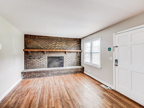 Attached garageCentral hvacDramatic brick fireplaceAll-white cabinet spaceLong wooden mantelSmart home functionalityGorgeous enclosed back patio