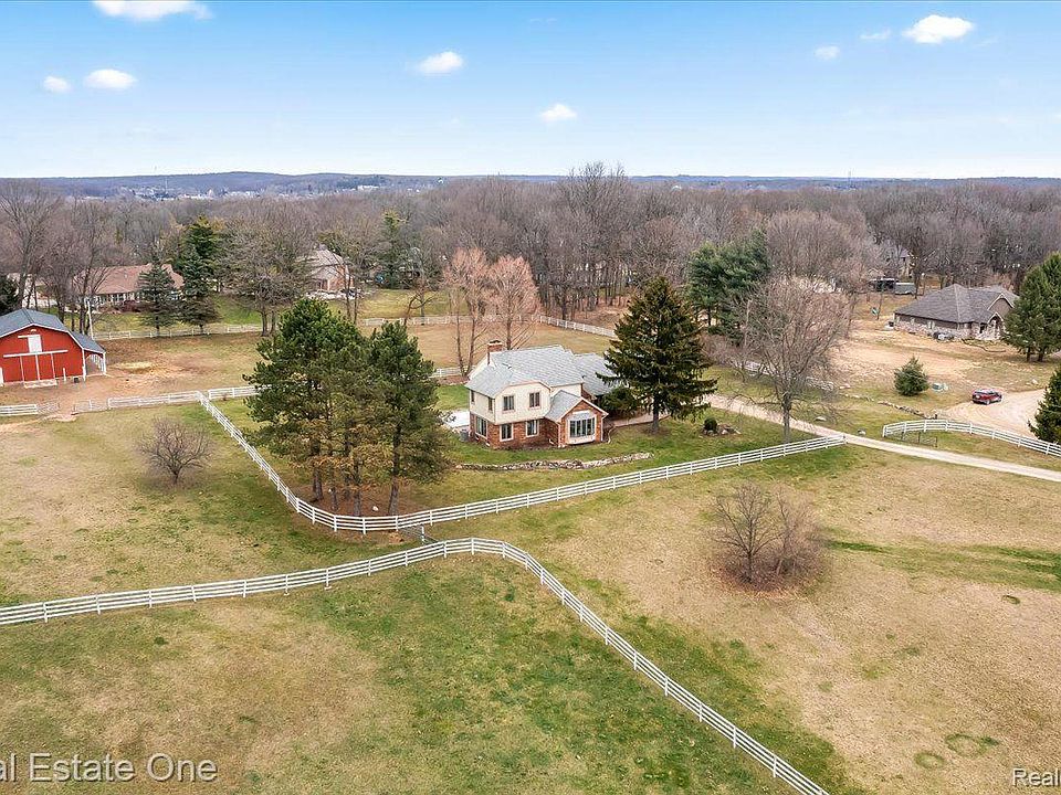 Introducing a captivating blend of timeless charm & modern sophistication, this meticulously remodeled colonial set on over 5 acres. Complete w 4 pastures enclosed in durable vinyl fencing & 48x30 barn w/a tack room & 4 12x12 stalls including rubber flooring. Alongside an attached pole barn in the rear & a convenient hay mound in the attic, this property is a haven for equestrian enthusiasts & hobby farmers alike. Embracing a charming modern farmhouse ambiance, every inch of this 2455 sqft home has been thoughtfully renovated to offer contemporary comforts while retaining its classic appeal. Step inside to discover a seamless flow throughout, w/ updates including new flooring, remodeled bathrooms, stunning new kitchen, furnace, ac, roof & 80 gal hot water tank just to name a few. All doors, both interior & exterior, have been replaced, enhancing the home's aesthetic and functionality. The renovated kitchen showcases stainless steel appliances & offers picturesque views of the horse barn, making entertaining & meal preparation a delight. Just outside the door wall is a newly poured patio to extend your entertaining space. Gather around the wood-burning fireplace, which not only adds warmth & ambiance but also features vents dispersing heat into multiple rooms for added comfort. Mud room & main flr laundry room complete with washer & dryer off the garage for added convenience. At the top of the stairs you will find space for a mini-office or study space. Retreat to the primary suite, featuring a walk-in closet & a fully remodeled bathroom with a spacious shower, providing a luxurious sanctuary to unwind after a long day. 2 additional bedrooms & large main bath complete the upstairs. With its impeccable blend of rural tranquility and modern amenities, this exceptional property offers an unparalleled lifestyle opportunity. Basement has nothing but opportunity to make your perfect space. Don't miss your chance to experience the epitome of countryside living in this stunningly remodeled colonial.