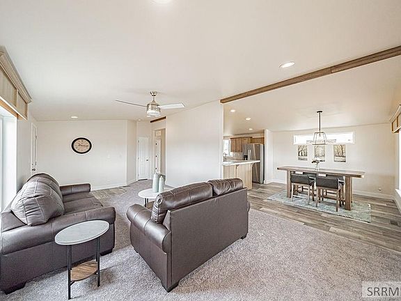Open concept layoutLiving and dining areaWalk-in showerFarm sinkWide hallwayStainless appliancesWalk-in closet