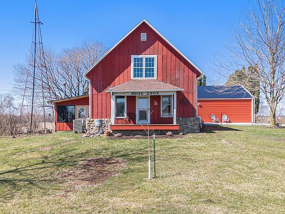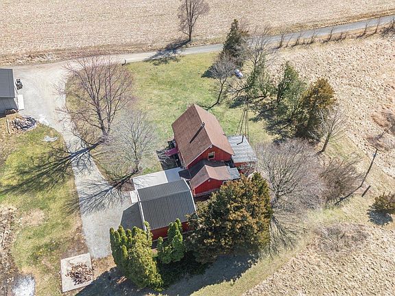 Tucked away on a peaceful 5-acre retreat with a private pond, just six minutes from town, this completely renovated farmhouse offers the best of both worlds—modern efficiency wrapped in timeless country charm. Imagine waking up to the gentle sounds of nature, sipping coffee by the pond, and soaking in breathtaking views in every direction. From the moment you step inside, you’ll feel the warmth of a home that has been meticulously rebuilt with care. A cozy entryway adorns a modern laundry room and full bath to add function to farm style living. The spacious, fully remodeled kitchen is a dream, featuring brand-new stainless steel appliances, concrete countertops, and elegant porcelain tile backsplash. Adjacent find a thoughtfully bright dinning area with plenty of room to entertain. A spacious sitting room calls you from the kitchen to enjoy a book and unwind. Find a functional bedroom on the first floor that can serve as a library, craft room, or dwelling space. The 2nd floor offers a unique den/office attached to the master suite. Use the whole 2nd level as a bedroom or create a functional alcove to meet your needs. Every inch of this home has been thoughtfully updated, from the high-efficiency mechanicals—including a new furnace, AC, heat pump, and water softener with app controls—to the remodeled basement, offering an unmatched level of durability for a farmhouse. The entire electrical system has been upgraded to 100-amp service, and brand-new copper plumbing ensures lasting quality. The true magic of this home lies in its unique features. An indoor spa room with a wood-burning fireplace and panoramic views invites you to slow down, with a hot tub included for ultimate relaxation. Step outside, and you’ll find pastures, rolling hills, and a private pond fed by a natural spring, and large trees providing shade in the summer. Find endless storage options—spacious barn for boats, cars, and equipment, plus a 25 X 30 workshop with electricity, a concrete slab, and a steel roof, perfect for your next big project. A detached 24x24 garage with soaring ceilings and an oversized steel door provides even more space, complete with a WiFi-compatible opener for convenience. With a Ring security system, smart home features, and every major system newly upgraded, this home is move-in ready and built to last. Whether you're looking for a peaceful escape or a functional, stylish farmhouse with modern amenities, this is a rare opportunity to own something truly special.