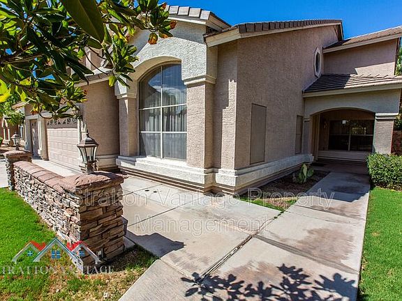 Prime Gilbert Location! This spacious 5-bedroom home is full of charm and functionality. Step inside to soaring vaulted ceilings and a dramatic curved staircase. The main level offers formal living and dining areas, plus a cozy family room with fireplace that opens to the updated kitchen featuring Corian counters, full-height backsplash, abundant storage, and a wine fridge. A full bedroom and bathroom downstairs provide extra convenience.