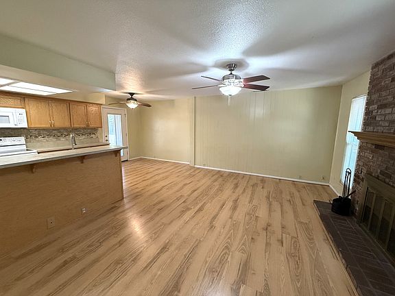 Wood fireplacePrivate patioOpen floor conceptCarpet in the bedroomsCentral heat and airLaminate wood flooring