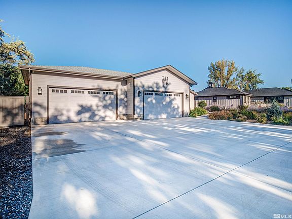 Location, Location, Location! This beautiful home is situated on the 11th fairway of the Carson Valley Golf Course. Built by a local custom home builder in 2017 and meticulously maintained over the years. Enjoy amazing views of the mountains and greens from the lovely back patio. Large fenced backyard is a blank slate for your dream yard - there is even enough room for a workshop!, The 4 car garage is large enough for all your cars and toys! Enjoy a gourmet kitchen, split floor plan, and high ceilings in this show stopper! Pictures of from July.