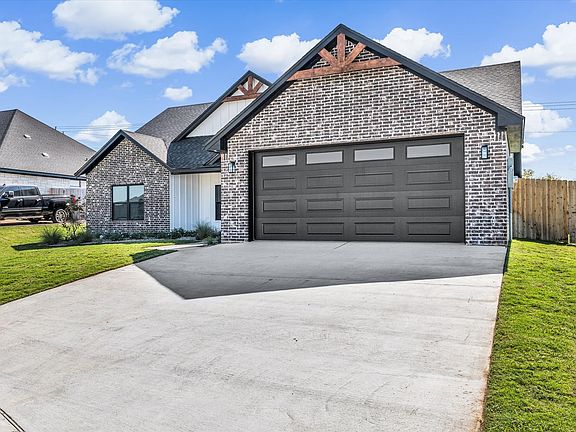 This new custom home sits at the end of a cul-de-sac in the established Moonlight Park community, surrounded by other beautiful custom homes. Thoughtfully designed, it blends modern Tuscany style with open, comfortable living. Inside, you’ll find wood-beamed ceilings, a brick wood burning fireplace with custom built-ins, and large windows that bring in plenty of natural light. The kitchen is truly the heart of the home featuring quartz countertops, a custom island with seating, built-in cooktop, oven, microwave, and dishwasher all tied together with rich textures and warm wood accents. The primary suite is tucked away for privacy and includes a soaking tub, walk-in shower, double vanity, and a spacious walk-in closet. Two additional bedrooms offer generous space, and the half bath off the living area is perfect for guests. Step outside to enjoy a covered patio overlooking a fenced backyard, ideal for relaxing or entertaining. The oversized two-car garage was built to fit large SUVs or trucks comfortably. From the elegant design to the quality finishes, every detail in this home was crafted with care it’s the perfect mix of timeless character and modern comfort.