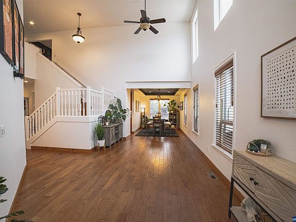 This open home has great views off the primary bedroom balcony of Cheadle Lake. RV parking, hot tub included, epoxy garage floors with 3 bays! Turf yard and hardscape so your landscape maintenance is now only pressure washing a couple times a year! Northshore Trail and the boat ramp are just across the street. Spiral staircase to upper deck.