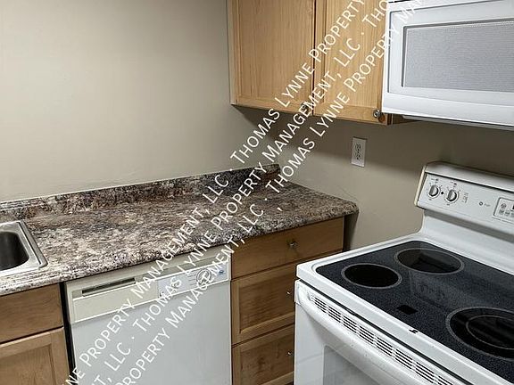 Renovated Kitchen: Featuring warm wood cabinetry, modern countertops, and all white appliancesperfect for daily cooking and entertaining.