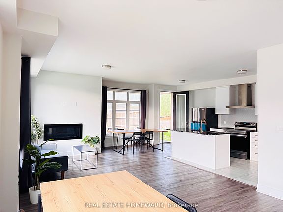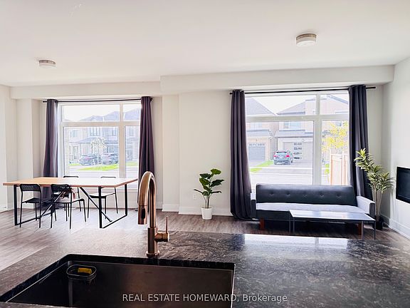 Welcome to this premium 4+1 bedroom all-brick and stone premium corner-lot double garage detached home in the prestigious Kedron community of North Oshawa. Built in November 2023 on a rare 62' frontage lot, this property features over $150,000 in upgrades including 9' smooth ceilings, premium flooring, upgraded oak staircase with iron pickets, sun-filled family room with Upgraded Gas Fireplace with Elegant Mantel in Living Room, and an open-concept dining area with walk-out to a fully upgraded loggia-style covered porch-a beautifully finished outdoor living space enhanced with approximately $40,000 in custom upgrades for year-round enjoyment. The chef-inspired kitchen offers extended custom cabinetry, granite countertops, stylish backsplash, premium built-in stainless steel appliances, a centre island with breakfast bar, champagne bronze hardware, and a dual-fuel compatible cooktop connection (electric or gas) with a gas line installed. A spacious main-floor office/den provides flexible living space. Upstairs features a luxurious primary suite with walk-in closet and spa-like 5-piece ensuite with freestanding soaker tub and frameless glass shower, along with three additional bedrooms and second-floor laundry. The full basement includes a cold room and offers endless potential. Additional highlights include direct garage access, private double driveway for 4 vehicles, HRV system, energy-efficient mechanicals, central vacuum, smart home package (video doorbell, programmable thermostat, water leak sensor), and full Tarion warranty. Ideally located minutes from Durham College, Ontario Tech University, Costco, shopping, restaurants, top-rated schools, Lakeridge Hospital, parks, Hwy 407/7, and backing onto a future school site with no rear neighbours.