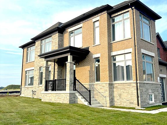 Welcome to this Premium 4+1 Bedroom Corner-Lot, all-brick & stone detached home in the prestigious Kedron community of North Oshawa. Built in November 2023 on a rare 62 frontage corner lot, this home boasts over $150,000 in upgrades, combining luxurious finishes with a thoughtful modern layout. The main floor features 9 smooth ceilings, an upgraded oak staircase with iron pickets, and a sun-filled family room with gas fireplace and upgraded mantel, flowing seamlessly into the dining area with walk-out to a covered loggia-style porchperfect for entertaining. A spacious office/den provides ideal work-from-home or flexible living space. The chef-inspired kitchen includes extended custom cabinetry, granite countertops, stylish backsplash, premium built-in stainless steel appliances, a centre island with breakfast bar, and gas line for the stove. Upgraded champagne bronze finishes throughout the kitchen and master ensuite add elegance. Upstairs, the primary retreat offers a walk-in closet and spa-like 5-piece ensuite with freestanding soaker tub and frameless glass shower. Three additional bedrooms, second-floor laundry, and a full basement with cold room provide practicality and endless customization potential. Additional features include premium flooring, direct garage access, private double driveway for 4 vehicles, HRV, energy-efficient mechanicals, central vacuum, and a smart home package with video doorbell, programmable thermostat, and water leak sensor. Full Tarion warranty included. Currently rented for $4,500/month. Minutes from Durham College, Ontario Tech University, Costco, shopping, restaurants, top-rated schools, Lakeridge Hospital, parks, and Hwy 407/7, with no rear neighbors as property backs onto a future school site.