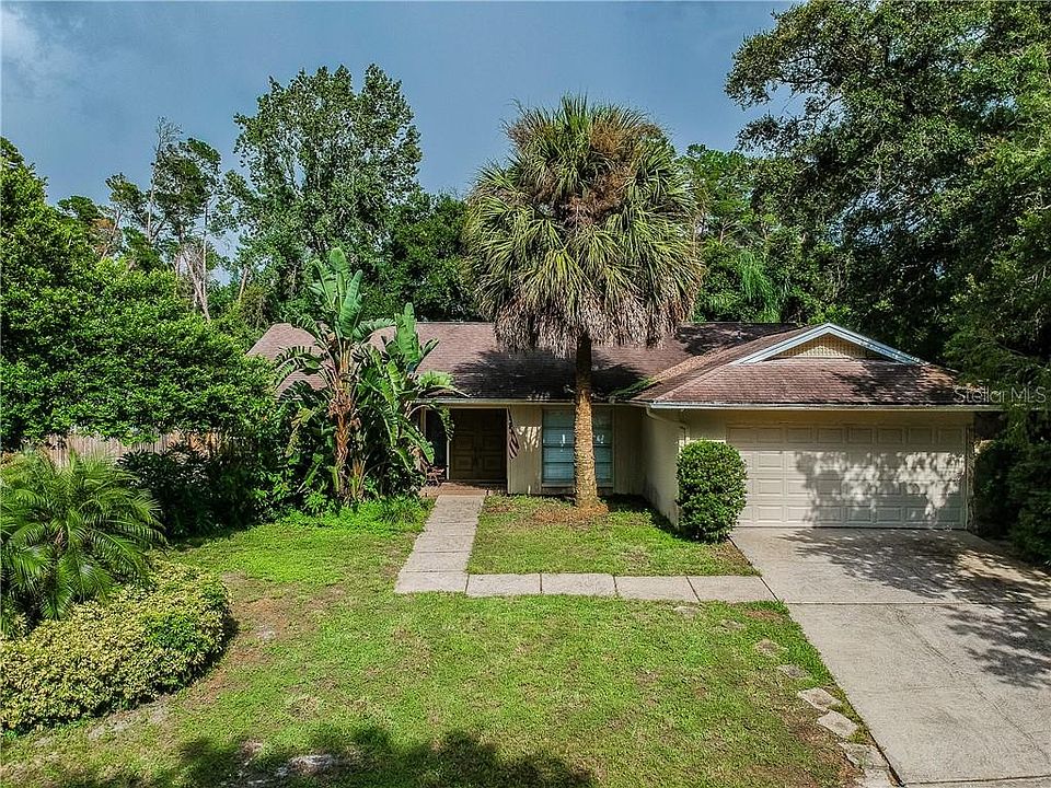 Opportunity knocks! This block home has a ton of potential. Double door entry walks you into the living room with sliding glass doors leading to the outdoor living area. Formal dining area. Split bedroom plan. The master bedroom will accommodate your king-size furniture and has a private bathroom with dual sinks and walk-in shower. The 4th bedroom is close by which is perfect for a nursery, home office, or that person that needs to stay close by. The open kitchen overlooks the family room and is perfect for entertaining. The other two bedrooms are good size too. There is an inside laundry room as well. The outdoor living space overlooks the pool. The wood laminate through most of the house is great for wear and tear. This community features a walking trail, tennis courts, basketball, and volleyball too. An Olympic size pool and clubhouse. With some TLC you can make this your dream home.