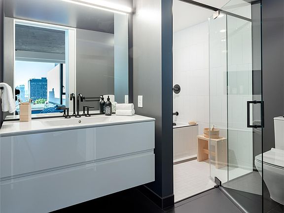 Residence 715 is a sophisticated 2BR/2BA home with a split bedroom plan, a spa like primary bathroom retreat, a well appointed kitchen with luxurious finishes, and a wall of south facing windows. The home includes, stunning hardwood floors, closet systems, a washer and dryer and window treatment. Parking is available for purchase. Located in the heart of San Francisco's Mid-Market neighborhood, Serif is a new 12-story condominium complex with 242 for-sale residences. Serif also share its space with the sumptuously hip The Hilton International hotel, retail and dining experiences. Serif illustrates the revitalization of a rapidly changing section of Market Street. Featuring prime walkable access to the theater, art, retail, dining and nightlife Serif enables residents to be amidst San Francisco's new hub of entertainment. The interior design combines angular forms with raw materials and finishes, such as concrete and wood, the palette blends striking black and white background surfaces with highlights of warm, natural hues and finishes. All images are representative of the development.