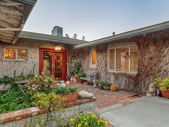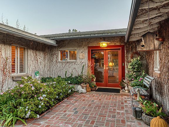 Situated on a very private cul-de-sac in the coveted San Rafael area of Pasadena, sits this classic mid-century ranch home. This lovingly cared for property includes three bedrooms and three baths, all on one floor. Upon entering the residence, one immediately feels the cozy openness of the house with its post and beam ceilings, hardwood floors, built-in entertainment center, and roaring fireplace. Off the dining area is a large kitchen and laundry room. There are two bedrooms with en-suite baths including the primary bedroom. There is also an additional bedroom and full bath. Sliding doors lead to the large deck with a casual sitting area and treetop views. Below the home is a large basement area as well as a workshop area that could easily convert to a home office. The grounds of this Golden Arrow Award winning home are truly whimsical. Enjoy sunsets on the outdoor brick terrace with its treetop views. A beautiful respite in Southwest Pasadena.