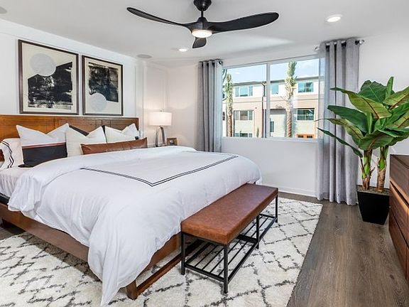 Live in modern comfort and style in this brand-new gated community near Ontario Mills, Toyota Arena, Victoria Gardens, and Ontario Airport. Plan 4 at Radius gives you the space to stretch out, gather in, and welcome guests with ease. Its open layout blends the kitchen, dining, and gathering room to keep everyone connected, while a large kitchen island makes hosting even more fun. Just off the gathering room, your covered outdoor living area invites you to relax, dine, and soak up the California sunshine with a bonus storage closet to tuck things neatly out of sight. Wind down in your spacious primary suite, featuring a roomy shower, dual vanities, and walk-in closet. Two secondary bedrooms, a full bath, and a laundry room round out the layout, you'll also enjoy a detached two-car garage, granite countertops, shaker-style cabinetry, on-trend flooring, and thoughtful designer details throughout.
