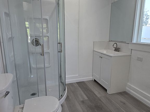 Upstairs large renovated studio featuring new flooring, fresh white paint, and a brand-new private full bathroom with a beautiful walk-in shower. The unit includes a new ceiling fan, multiple windows for abundant natural light, and a private locking storage cabinet in the common area.