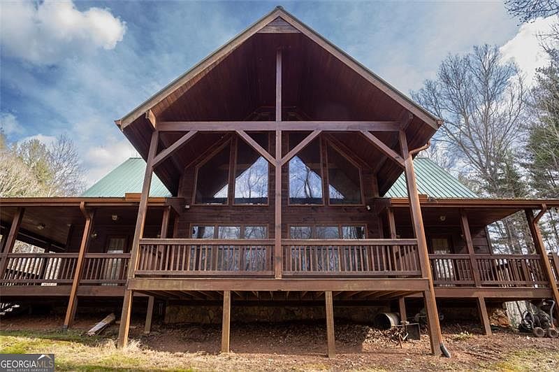 This is the North Georgia Mountains hideaway you've been looking for. This custom-built home on Holden Creek with wrap-around deck, soaring cathedral ceilings and sprawling 24.3 acres is the ideal spot for your vacation home or primary residence. With NO HOA restrictions and located just 20 minutes from downtown Ellijay, this property could be updated and converted to a successful Airbnb/rental property. The grounds include a two-car metal garage and old farmhouse with power and water, that could be torn down and built as another income-producing property. When you step inside the main house, you'll find the open-concept living area with beautiful stone fireplace and tongue and groove wood paneling. Large kitchen and dining room area is perfect for the whole family to sit down to dinner. The master on the main level comes with a large ensuite bathroom with whirlpool tub and walk-in shower, as well as a private entrance onto the veranda. Each bedroom comes with expansive walk-in closets or additional office space. The unfinished walk-out basement has the potential to create even more bedrooms and living space. This home is ready for your personal touch. The seller is willing to include the furniture with the purchase of the home. Schedule your private showing to see all of the details of this incredible property in person.