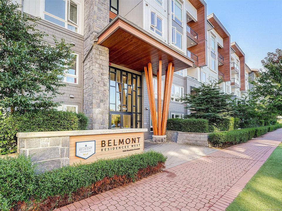You'll love this 3 bed - 2 bath corner unit w/huge windows facing North, West & South looking over the Galloping Goose trail. The Belmont Residences West offers a roomy floor plan featuring great bedroom separation & no shared walls! The primary suite has a giant walk-in closet with new built-ins & 4pc ensuite. The kitchen boasts a huge pantry wall, high end full-size appliances & a large island perfect for family meals, parties & homework. The generous patio, equipped w/ gas for summer BBQs. Heat Pump for year round heating/cooling is being installed! The family friendly building allows dogs & cats of any size. Fantastic common areas include music & playroom, community rooms & kitchens, pet wash. EV Charger with your underground, secure parking. Storage Locker, bike room & kayak storage. Walk to Belmont Shopping Plaza w/ cafes, grocery stores & restaurants. On the other side, you'll find the Galloping Goose, to run, walk, bike or commuting to town. Ideal Family Living!