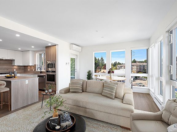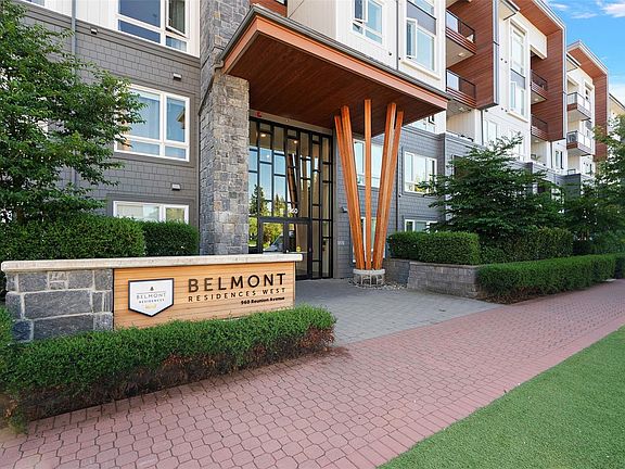 Welcome to Belmont Residences! This stunning 1,105 sq.ft. corner unit features 2 Bdrm, large den, 2 Bths & a rare bonus that incl. 2 parking spots! The primary bdrm boasts a beautiful spa-inspired ensuite & walk-in closet. Every room has large windows that flood the space with natural light. The open-concept layout has a spacious gourmet kitchen w/a large island, SS appl, gas cooktop, plenty of cupboard space & BBQ hookup on the patio. With no shared walls with the neighbours & the only joining wall is in a closet, this space feels very private. Other features: heat pump, in-suite laundry & dedicated storage. Building has a terraced patio w/BBQ, lounge w/firepit, kayak storage, pet grooming station, bike storage & access to the Belmont Club. Located just steps from Belmont Market, access to the Galloping Goose Trail & transit, this prime, walkable neighborhood offers an active urban lifestyle with vibrant local amenities & community spaces designed for connection & easy commuting!