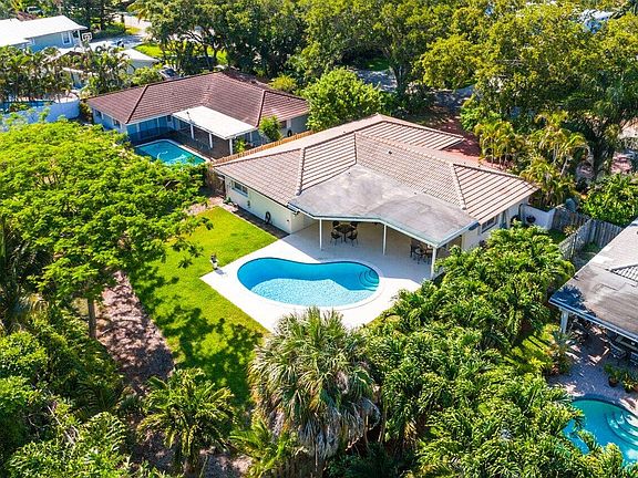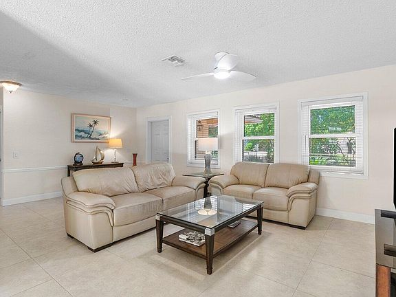Fantastic opportunity in Palm Beach Farms! This charming home sits on a generously deep lot, just a stone's throw away from Pine Breeze Park, nestled on a tranquil, tree-lined street. Featuring a newer kitchen boasting Thomasville cabinets, quartz countertops, a stylish stone backsplash, and stainless steel appliances, this home exudes modern elegance. Throughout, you'll find large tiles, and with hurricane impact windows & accordion shutters, peace of mind comes standard. The split floor plan offers versatility, while southern exposure ensures ample natural light and cool breezes. Step outside to discover a covered patio, leading to a very private pool area overlooking a lush yard--perfect for entertaining or relaxation. plus a jetted tub in the cabana bath and outside, the circular drive adds a touch of charm and convenience. Plus, benefit from top-rated schools, including Addison Mizner Elementary, Boca Middle, and Boca Raton Community High School. With easy biking access to the beach and downtown Boca's vibrant offerings, this home offers the quintessential Florida lifestyle.