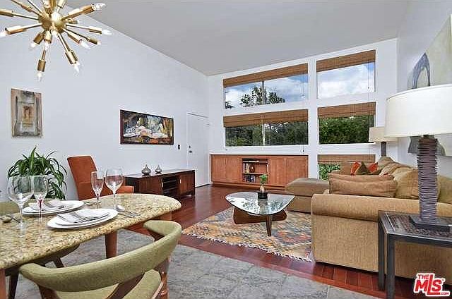 LOOKING FOR BACKUP! Rare opportunity to live in Sunset Junction, Silver Lake's cultural center. Light floods through floor to ceiling windows in this breathtakingly outfitted top floor, corner unit condo.This gem in a small controlled access building features rich, natural textures,luxurious Brazilian Cherry hardwood floors and ceramic slate tile floor in the kitchen and bathrooms. Built-in modern maple cabinetry. Open kitchen with granite counter tops, custom granite table, and stainless steel appliances with a chef's range and Frigidaire french door refrigerator. Living room with 12' ceilings. 2 beautiful, bright bedrooms feature walk-in closets with custom built-in shelving, each has its own full bathroom.Step out onto the balcony with a private, tree lined view for your morning coffee or a glass of wine accompanied by a stunning sunset. Then step out for brunch or a craft cocktail at one of the local hangouts: Sqirl, Cliff's Edge, Forage, Black Cat, El Cid, 4100 or Cafe Stella.