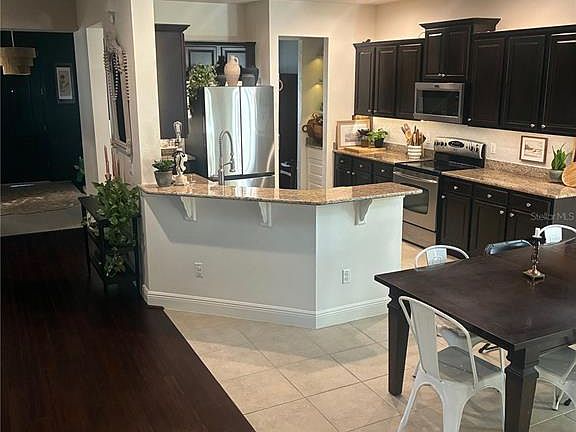Welcome to a home where families thrive and kids can truly be kids. Located in a great neighborhood filled with other wonderful families, this home offers access to top-rated schools, a community clubhouse, and a resort-style pool—the kind of place where friendships are built and weekends are unforgettable. Inside, the layout is designed with family life in mind. All bedrooms are upstairs, including two master bedrooms, creating privacy and flexibility for multi-generational living or guests. Two rooms share a jack-n-jill style bathroom upstairs. Downstairs features a dedicated office/den, perfect for working from home or homework time, along with a stylish kitchen enhanced by a Butler’s pantry—ideal for entertaining and staying organized. Step outside and you’ll find where this home truly shines. An oversized patio with over 500 sq ft of additional space was made for entertaining and family fun. Enjoy evenings around the fire pit, host birthdays with room for a playground and bounce house, or relax while the kids play safely—this backyard is a dream for both adults and children. The location is unbeatable. Excellent location with a new Publix center across the street and a new AdventHealth Hospital across the street. You’re just 10 minutes to I-4, 10 minutes to the Turnpike, 20 minutes to Disney, and 30 minutes to the airport, making daily life and weekend adventures effortless. Additional highlights include solar panels installed 6 years ago (balance to be assumed), and the owner is willing to lease back, offering flexibility for the right buyer. This is more than a house—it’s a home built for memories, laughter, and growing together