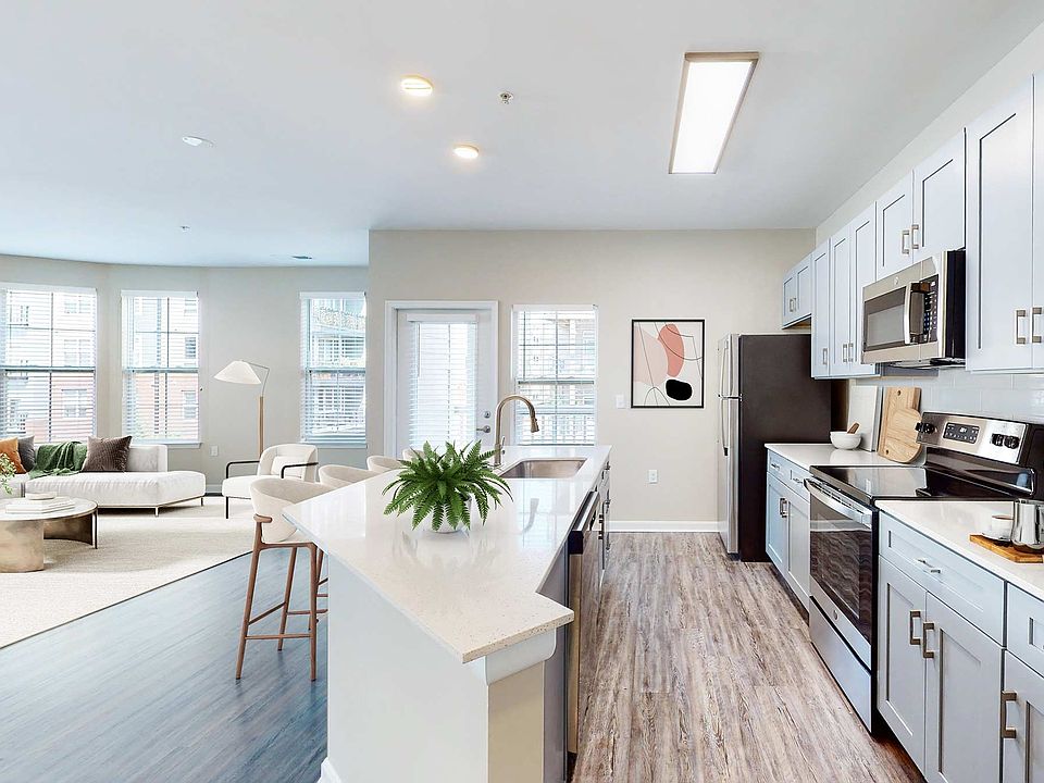 - Exterior features: Balcony, Black appliances, Build credit score with RentTrack, Community prep kitchen, Conference Room, Courtyards, Deposit free with Rhino, Dual bathroom vanity, Fitness On-demand studio, Flat front cabinetry, Focus rooms, Game Room, Kitchen island, Lifestyle services powered by Amenify, Moving services with Move Matcher, Package Receiving, Pet friendly, Quartz countertops, Resident App, Secured building entrance, Shaker style cabinetry, Short Term Lease, Stainless steel appliances, Sundeck, TV Lounge