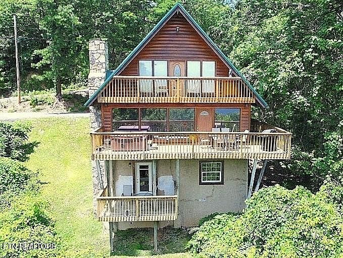 This five-bedroom cabin features its own porch or balcony with breathtaking mountain views. Located just minutes from Gatlinburg, it provides quick access to entertainment, dining, and other amenities. The property is fully furnished and move-in ready, making it an excellent opportunity for buyers. It is currently part of a successful overnight rental program, with gross rental incomes of $ 49K in 2025, $66K in 2024, and $74K in 2023. The cabin is spread over three levels: the upper level offers two bedrooms and a bathroom; the main level includes a kitchen, living room, an additional bedroom, and a bathroom; the lower level has two bedrooms, a bathroom, a pool table, and a movie area. Location, location- don't miss this one!