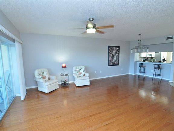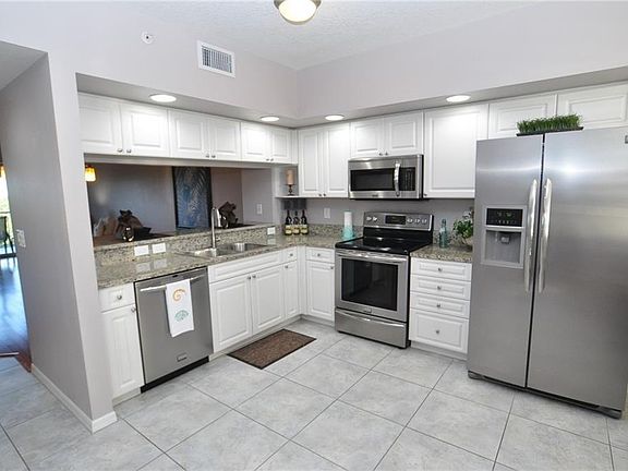 Beautifully upgraded 3 bedroom, 2 Bath top floor condo with that includes a 1 and ½ car garage. Open floor plan and natural light throughout the unit. Kitchen has granite counter tops, gorgeous white cabinets & stainless-steel appliances and a closet pantry. Beautiful oak wood flooring in the living room, halls, and bedrooms. 9-foot ceilings & split bedroom plan. Plantation shutters, indoor laundry room. Fantastic covered balcony with ceiling fan that overlooks the pond and pool areas. Golf Lake features state of the art safety systems, post tension elevated slabs, gemstone flooring in the common walkways, & lockable exterior storage space right next to the front door. All exterior walls and floors in Golf Lake are poured concrete and block construction dividing walls between units. Hurricane rated windows and sliding glass doors to the patio. The Golf lake Condos are adjacent to the East Bay golf club without the expense. Easy access to shopping, restaurants, museums, theme parks, and world-renowned gulf beaches.
