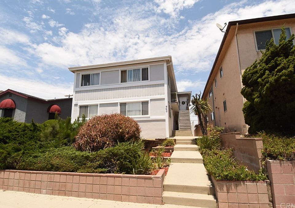 This is a 4-unit building in a great location on a nice quiet street in San Pedro 'Palisades' area. These units are always rented because they have a very open and spacious floor plan (see photo or attached drawing) with inside laundry hook-ups, own gas water heater, and own 1-car garage! All units have 2 bedrooms, 1 full bathroom with tiled counter & tub/shower walls, large living room, a good-sized kitchen with dining area, and lots of closet space. Each unit has a gas range, and most units have mirrored closets doors & ceiling fans. One unit has been recently upgraded with newer carpet and nice vinyl plank floors. Building has copper plumbing, newer vinyl windows, and separate electric & gas meters. Great tenants, 3 are long term, and one is little over 1 year. Rents shown are the rents starting on 9/1/18. Total building square footage is 3,452 and lot size is 5,001 (per tax record). It's a close to everything: shopping, dining, Waterfront, schools, and freeway.