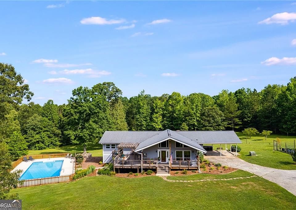 A home that makes you feel like you're on vacation all of the time! Situated on 43 private acres, this 3 bedroom, 2 1/2 bathroom home offers a tremendous amount of wonderful features! The home has oak flooring throughout, tile in the bathrooms, and tile in the mud/laundry areas. The primary bedroom offers two closets. Both primary and secondary bathrooms have been renovated beautifully with new tile, vanities, and fixtures. The open living room and kitchen offer a large space to entertain and gather with friends and family. New granite counters have recently been installed in the kitchen as well. Sip your coffee and listen to the birds on the newly constructed sunroom connected to the primary bedroom! The sunroom is heated and cooled and offers a half bathroom. Outside you'll find fruit trees, blueberry bushes, and grape vines. The decking on the front and side has been upgraded with Trex boards and a pergola has been recently added. The outside of the home also has several raised garden beds in a fenced area that was constructed in 2020. Do you need space for your horses, goats, or other livestock? This home has approximately 7-8 acres fenced! Do you need space for a camper, lawn equipment, or boat? You'll have it here. This home offers a 50x30 shop with 50x20 open shed areas. The shop has concrete flooring throughout and electricity. When you get finished tending to the garden, and picking blueberries you'll want to cool off in the 20x40 saltwater pool! The sunsets and sunrises over the pool will leave you breathless! When you move in, you'll never want to leave!