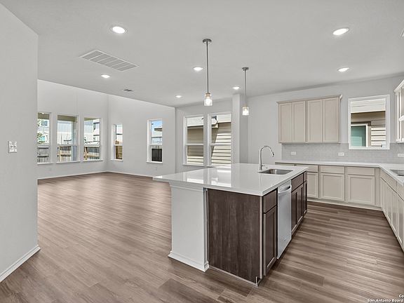 The dramatic two-story Devers entry makes a bold first impression, leading into an open-concept design perfect for entertaining. The gourmet kitchen features stylish two-toned cabinets, omega stone countertops, and built-in stainless steel appliances. The first floor offers a private study, a guest bedroom, and a serene primary suite with a box window, two spacious closets, and a spa-like bath with a walk-in shower and a separate soaking tub. Upstairs, you'll find two additional bedrooms, a large game room, and ample storage. Enjoy outdoor living on the Texas-sized covered patio overlooking a beautifully landscaped yard. With designer finishes throughout, this home is a must-see and sits on a spacious corner lot! Schedule your tour today! This home is now 100% complete and move-in ready!
