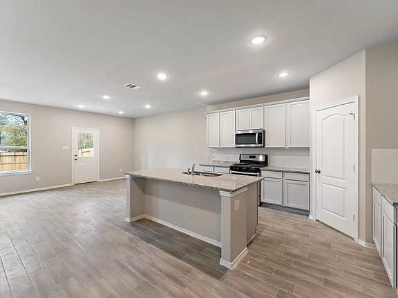 The Travis floor plan features a front porch entry that leads to the foyer. Just off of the foyer are 2 spacious secondary bedrooms and a bathroom with a linen closet. Towards the back of the home is the large island kitchen with corner pantry, all open to the dining area and living room - perfect for entertaining. The primary bedroom is roomy with a large shower and a huge walk-in closet. This home also features a study that's great for working from home or at-home learning. 4th bedroom in lieu of study, covered patio and separate garden tub in the primary bathroom are available structural options.