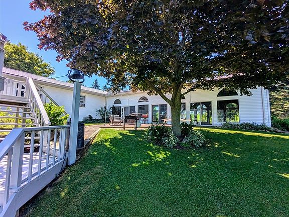 Spectacular North East Twp Home, perfect blend of Country, and simplicity. This is the perfect home for hosting gatherings all year round. Indoor, Inground pool is a must see! Patio area off pool addition. This active homestead is a paradise for those looking to garden, raise animals, and enjoy the outdoors and serenity of a convenient Country location. Dual open staircases allow easy access to the extensively finished LL featuring 2 game rooms, exercise room, FP, 2 bedrooms, full bath, canning kitchen, and workshop. Remodeled kitchen will make cooking and baking a pleasure, extra large dining room perfect for Holiday meals/ parties, Living room with cathedral ceiling features amazing views and door to deck. Need space for your stuff? The 3 car attached garage is perfect for tools, toys and vehicles. The detached garage is huge and slopes into lower level barn area. The L shaped garden shed with concrete floor is perfect for additional storage. One of a kind Home!