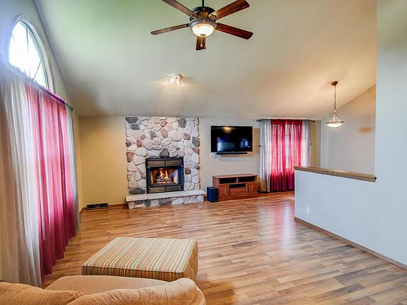 Only employment relocation brings this well-maintained ranch home to market! Features include; open concept layout, vaulted ceilings, gas fireplace with stone surround, laminate wood flooring, dinette and breakfast bar, stainless steel appliances, nice sized master bedroom with walkthrough bath/shower stall, updated fixtures throughout, spacious lower recreation room with built-in mini frig, separate finished bonus room, plenty of additional storage, entertaining deck off the kitchen, garden shed, fire pit (with starter wood), tasteful landscaping, and a 2.5 car garage. Excellent location for commuters, just minutes away from 1-94 and many local conveniences. No waiting - move in ready! MOTIVATED SELLER!!