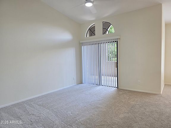 Covered patioFresh paintNew carpetBright interior locationVaulted ceilingsCeiling fans