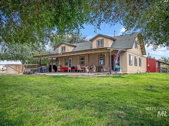 Amazing horse property w/lots of amenities on 7.28 acres, nestled against Indian Creek with 2 parcels. Kayaking, fishing, swimming, and bird hunting in your own backyard. The 4 bedroom, 2 bath home features large living room area, new carpet, Pergo floors, new windows, pellet stove and skylights. Covered patio makes for a great entertainment area with a fire pit. Bring your animals, irrigation, fenced pasture, pond and fruit trees. Horse facilities include riding arena 110x80 (dressage), Paddock paradise lane, 3 horse pens (36x36), obstacles, noble/loafing shed (12x12). Barn with 3 enclosed Priefert stalls, tack room, sink/wash area and runway lights for the horses. Plenty of parking for horse trailers, toys and RV's. Beautiful views of the Owyhee's, Boise, and Trinity Mountains.