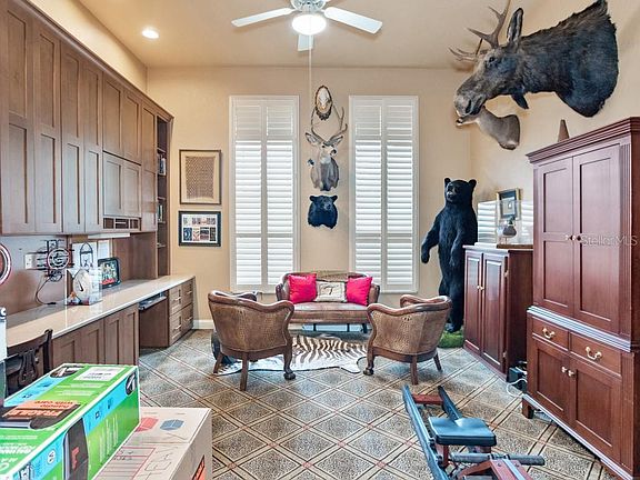 Superb location with privacy. This is a lot of home for the value. Amazing features inside and out including a gated entryway with privacy and space from the road. If your dream is to entertain you will fall in love with the Chefs kitchen with Double Ovens, Double dishwashers, Warming Drawer, 5 Burner Stove with separate grill, Ice Maker, Microwave, Wine Cooler and Double Counter Appliance Cabinets. A vegetable sink in the kitchen and an extra sink for your bartender in the Butlers Pantry. You will not find a home with more storage! Floor to Ceiling Cabinets in many rooms. Walk out of the great room with a 15 Foot opening to the spacious lanai/pool/ Summer kitchen. Interior Ceiling heights are 10, 12 and 13 feet high. Pop up ceilings in the master suite and formal dining room. Hardwood was recently added with solar panels for the heated pool. Gas fireplace and Jenn-Air grill. Wired for surround sound. Some furniture negotiable.