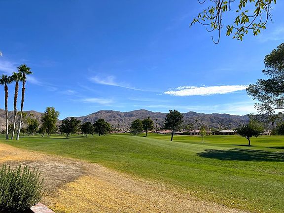 INCREDIBLE OPPORTUNITY in the highly sought after Mission Lakes Country Club on the Northside of Desert Hot Springs with AMAZING MOUNTAIN VIEWS, a semi-private 18-hole championship 'Ted Robinson' DESIGNER GOLF COURSE, onsite pro shop and a MASSIVE CLUBHOUSE adjacent to the enormous pool with dual spas, professional tennis courts, modern fitness center, beautiful banquet room, fine dining area, manned bar, and the casually tasteful 'Sand Wedge Cafe'. This LARGE DESERT-LANDSCAPED LOT boasts a spacious rear patio area for entertaining, playing or relaxing directly ON THE GOLF COURSE with its beautifully manicured grounds and majestic mountain backdrop. The front DOUBLE-DOOR ENTRYWAY opens up to a grand living room with a gorgeous marble-finished FIREPLACE and tall VAULTED CEILING with recessed lighting and exposed wood rafters. The U-shaped kitchen with dual oven has an abundance of cabinet storage and provides a vast countertop space for preparing and entertaining alongside the PANORAMIC window views of the stunning backyard. The almost 2700 sq.ft. floorplan hosts 4 bedrooms, both a master plus a separate JUNIOR SUITE with its own full bath in addition to the 2 guest bedrooms, a total of 3.5 baths, a 2-car garage with storage loft, central vac system, and low maintenance desert landscaping. The LOW MONTHLY HOA fee includes UNLIMITED GOLF for two owners, basic cable/ internet service, and access to the MISSION LAKES INN which provides stellar accommodations for club visitors and guests. Just minutes from downtown Palm Springs, the I-10 Freeway, and the Palm Springs International Airport this home is IDEAL for any and all homebuyers.