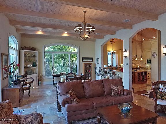 Your PRIVATE ENCLAVE awaits you in this BARBADIAN STYLED Beauty! STUNNING INTRACOASTAL VIEWS. Located just over the bridge to Amelia Island, 10 min to the Atlantic. Chef's dream kitchen w/ SUB ZERO refrigerator, GE Monogram 6-burner gas stove,GRANITE, 2 sinks, and wine fridge. MARVIN hurricane proof windows and French doors, BLACK WALNUT, Jerusalem Stone, and Marble floors. Split bdrm plan with elegant master on one side and 2 bdrm en suites on the other. Office, laundry room, DR, and open, light filled living space that celebrates the dynamic view. Upstairs studio/potential 4th bedroom w/ plumbing. BUILT TO LAST w/ 50+ year CEMENT TILE ROOF & raised foundation creating a huge BASEMENT. 2 Tankless gas WH, elevator ready. 4- car garage.